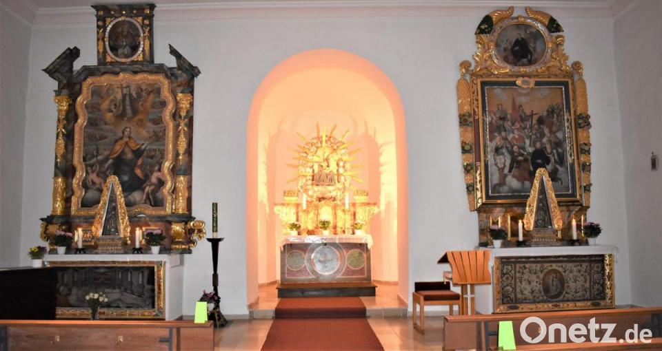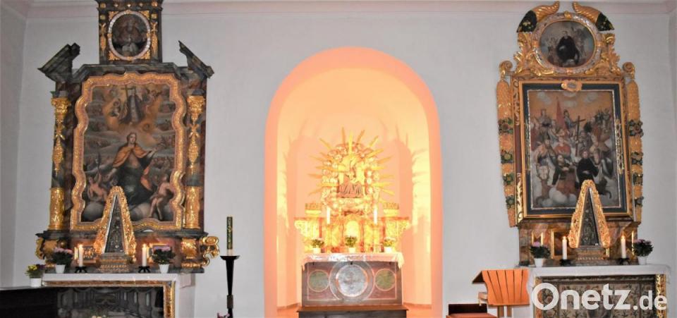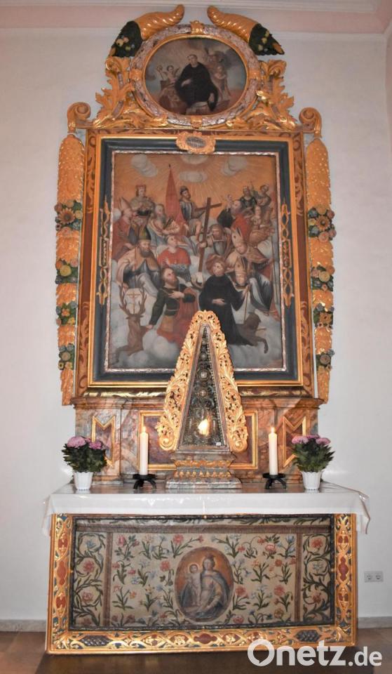 1894 wurde der Kreuz- oder Schmerzhafte-Mutter-Altar auseinandergenommen und an die Nordwand transferiert. Die Mater-Dolorosa-Skulpturen gibt es seit dem Frühbarock, also der zweiten Hälfte des 17. Jahrhunderts. Das Heilig-Grab-Gemälde am jetzigen Ursula-Altar sei mit Sicherheit das Antependiumsgemälde dieses Kreuzaltars gewesen, meinte die Kreisheimatpflegerin.