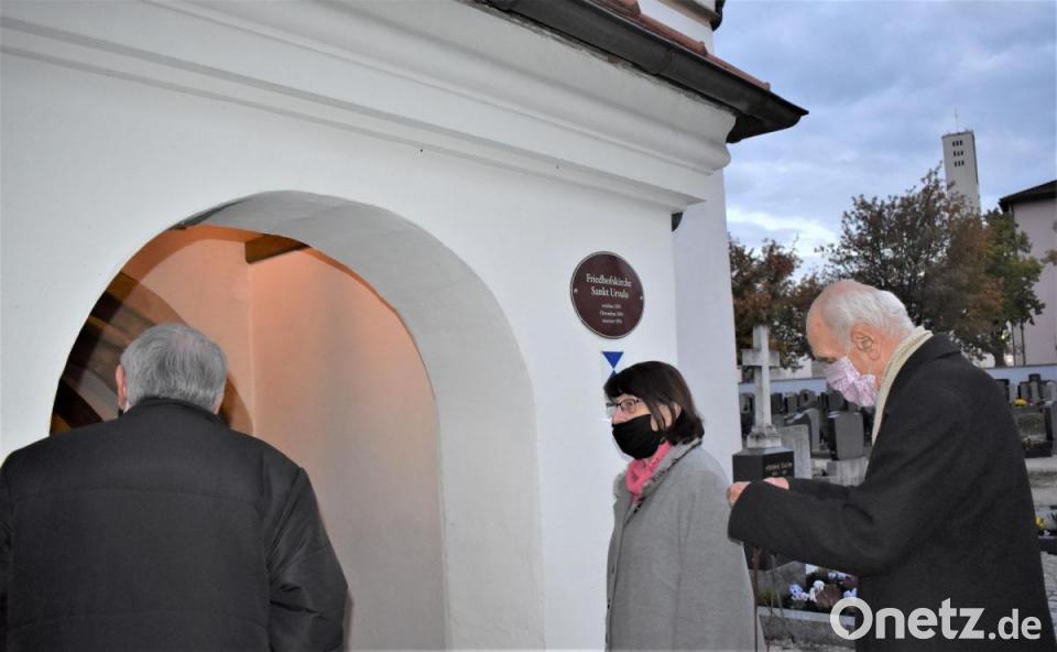"Dank der Sachkenntnis, Vorsicht und Sorgfalt von Malermeister Albert Hößl wissen wir heute viel mehr über die Entstehungsgeschichte der Friedhofskirche als Generationen vor uns." Kreisheimatpflegerin Leonore Böhm bat die Gläubigen bei ihrer Kirchenführung zur 425-Jahr-Feier der Friedhofskirche St. Ursula zunächst nach draußen.