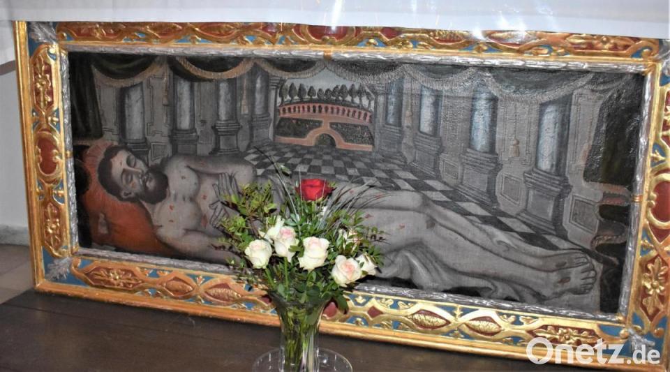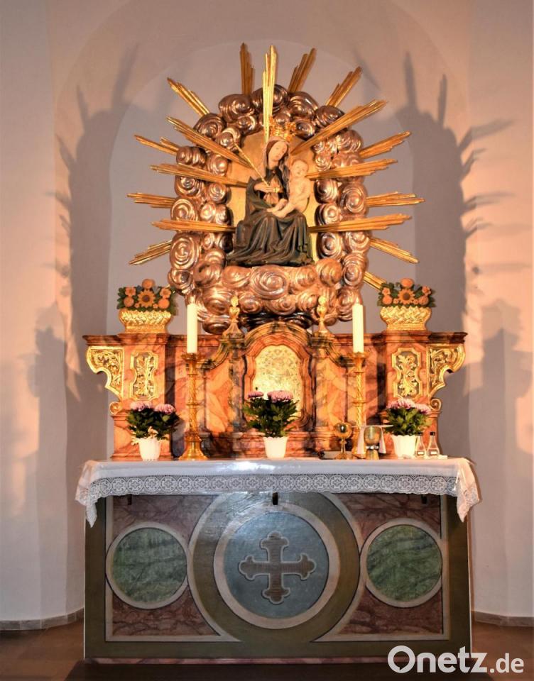 Die wertvolle Skulptur war laut Leonore Böhm innerhalb der Friedhofskirche bereits an verschiedenen Orten platziert: an der Nordwand des Kirchenschiffes, auf der Kanzel, an der Nordwand des Anbaus und heute im Hochaltar.