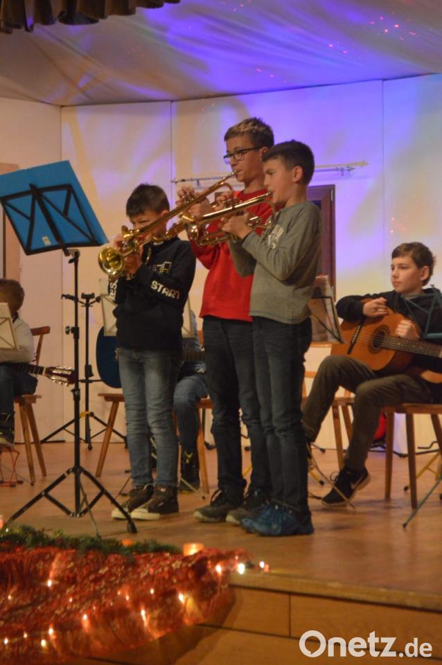 Zahlreiche Eltern, Angehörige und Freunde der jungen Musiker kamen, um der Musik zu lauschen. Das Trompeten-Trio Raphael Denk, Carlotta Sieber und Dominik Kopp eröffneten dreistimmig mit "Adeste Fideles" und "Wir sagen euch an". Hinzu kamen Solo- und Ensemble-Stücke für Gitarre. Das Repertoire reichte von klassischen Weihnachtsliedern wie "Es ist ein Ros entsprungen", "Was soll das bedeuten" oder "Joseph lieber Joseph" über volkstümliche Lieder wie "Es wird scho glei dumba", "Oh Tannenbaum" oder "Am Weihnachtsbaum die Lichter brennen" hin zu Kinderliedern wie "Morgen Kinder, wird's was geben" oder "Lasst uns froh und munter sein" und Beiträgen aus Gospel und Pop.