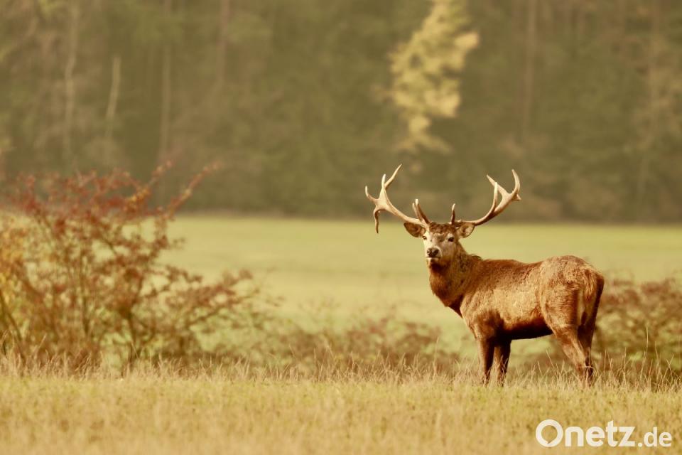 Mit einer Schulterhöhe von knapp 130 Zentimeter ist er nicht zu übersehen. Die Aufmerksamkeit der Damenwelt braucht er aber nicht mehr auf sich ziehen, denn die Fortpflanzung ist für dieses Jahr inzwischen abgeschlossen. Die Brunft ist zu Ende und im Revier kann wieder Ruhe einkehren.