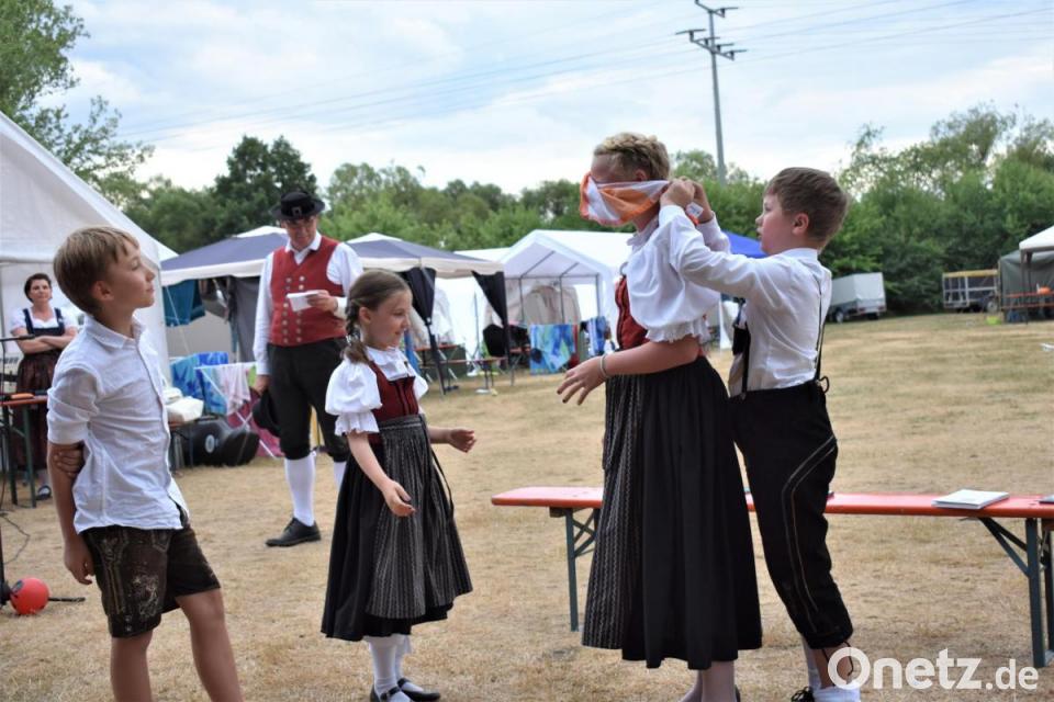 Die Kinder erzählten auch, dass es beim Zeltlager einen Sandburgen-Wettbewerb, eine Nachtwanderung und ein Grashüpferhotel gab. Neben dem Einstudieren der Tänze stand jeden Tag Schwimmen auf dem Programm. Schließlich galt es, die Schwimmabzeichen in Gold, Silber und Bronze zu schaffen, was auch gelang. Vor den Tanzauftritten und den Musikstücken mit Flöte und Akkordeon wurde bei einem Gottesdienst, den Pfarrer Hans Bayer zelebrierte, Gott gedankt.