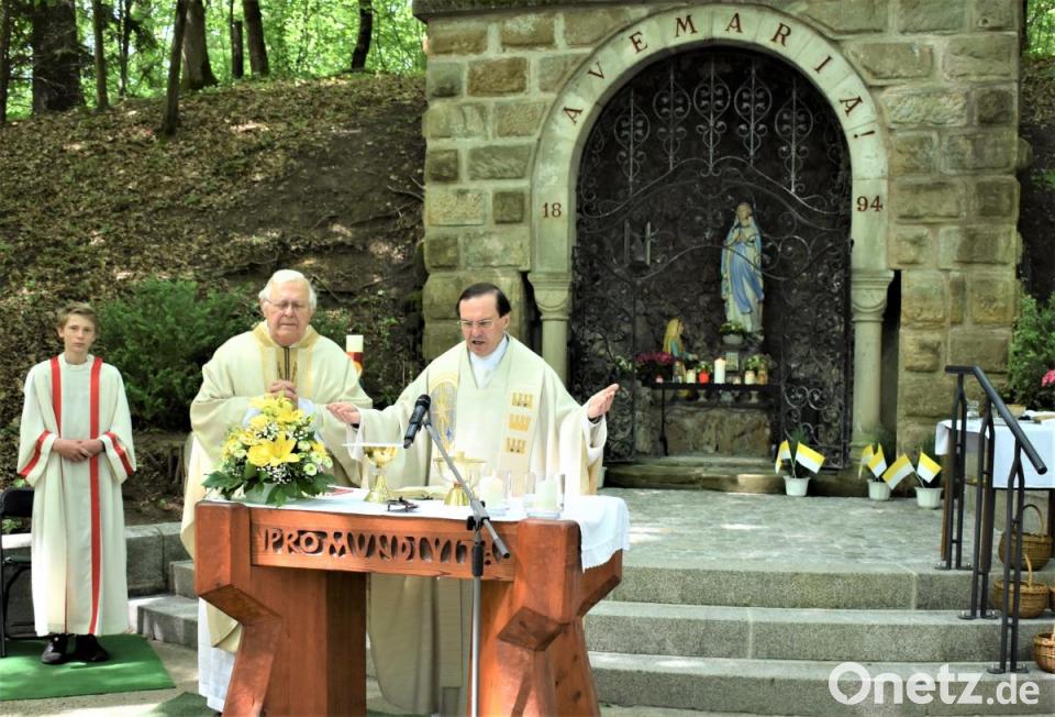 Die Gläubigen feierten am Sonntag das 125-jährige Bestehen der Lourdesgrotte. Dazu war "Grafenwöhrs heiliger Berg" festlich geschmückt. Viele Kerzen, Blumen und gelb-weiße Fähnchen zierten den Ort am 125. Geburtstag der Grotte. Stadtpfarrer Bernhard Müller begrüßte die Gläubigen zum Festgottesdienst, den er zusammen mit Monsignore Karl Wohlgut feierte. Dieser war auch Festprediger.