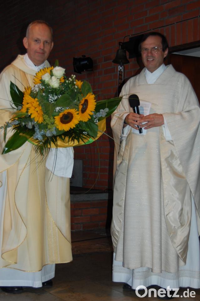 Die Pfarrei freute sich auf ihren Reinhard, und die Bürger waren zahlreich zum Heimatgottesdienst gekommen, den Stadtpfarrer Bernhard Müller arrangiert hatte. Mit Müller standen die Ruhestandsgeistlichen Hans Bayer, Karl Wohlgut und Wolfgang Traßl am Altar. Hauptzelebrant war der Jubilar selbst. Der Chor "Ex Animo" mit Leiterin Iris Eckert sang berührende Lieder. Leonore Böhm, jahrzehntelange Schmückerin der Friedenskirche, hatte für das Geburtstagskind ein Blumenarrangement kreiert, augenfällig drapiert vor dem Altar.