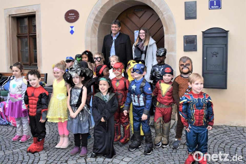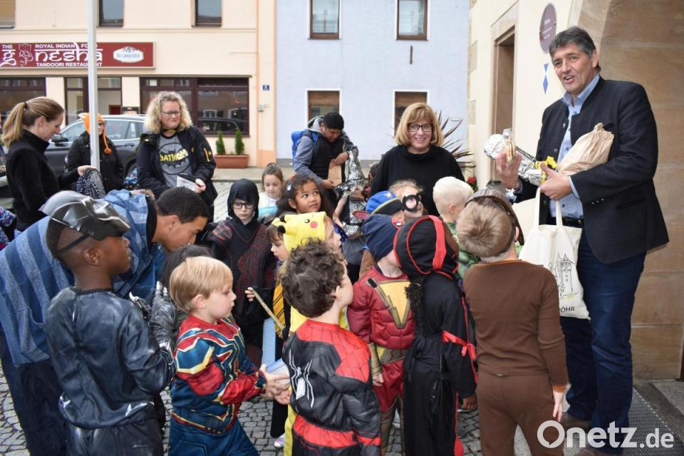Die Jungen und Mädchen hatten sich blitzschnell dem Anlass entsprechend verkleidet: die einen als Hexe, andere schlüpften in das Kostüm einer "Star Wars"-Figur. Sie verlangten aber nicht "trick or treat" beziehungsweise "Süßes oder Saures", sondern brachten selbst viel Süßes mit. Nach einem "Happy Halloween" machten sie sich wieder auf den Weg .