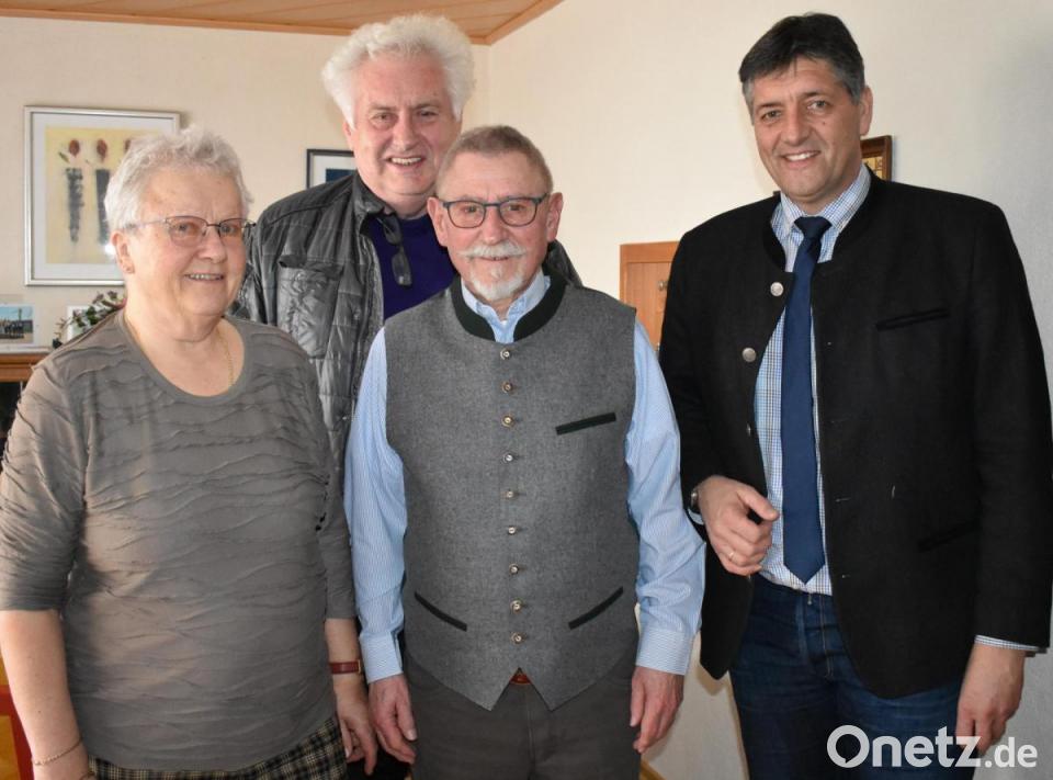 Zum 80. Geburtstag gratulieren außer Ehefrau Rosemarie und Manfred Neumann auch Bürgermeister Edgar Knobloch sowie viele Freunde und Nachbarn aus der Bahnhofsiedlung. Dazu gehörte auch Willi Klug, mit dem Schütz schon als Kind viel erlebt hatte.