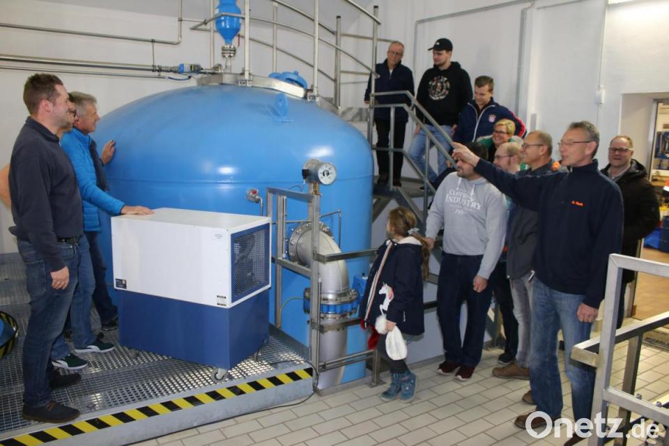 Die Wassermeister Günter Rauh und Jonas Neubauer erklärten die Funktionsweise des Wasserwerks in Grafenwöhr. Das hiesige Wasser wird aus drei Brunnen geschöpft. Die Schöpfmenge pro Tag beträgt mehr als 2500 Kubikmeter, die jährliche rund eine Million Kubikmeter. Damit werden je nach Stationierung der US-Soldaten etwa 12000 bis 18000 Menschen täglich versorgt. Dafür unterhält Grafenwöhr ein Rohrnetz von 140 Kilometern. Die Brunnen sind zwischen 120 und 160 Meter tief - damit würde der Kirchturm der Stadt viermal hineinpassen. Die notwendigen Pumpen bringen eine Leistung von 75 Kilowatt.