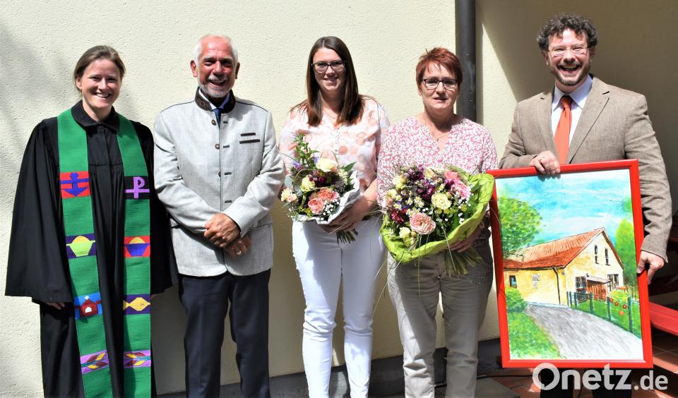 Im Rahmen der Feier bedankte sich Pfarrer Dr. André Fischer bei Kita-Leiterin Ines Gutt für ihre 24-jährige Arbeit. Für sie gab es Blumen und ein Bild des Kindeergartens, das der Grafenwöhrer Künstlers Johannes Janner gemalt hat. Blumen bekam auch Yvonne Rothmaier, die ihre Ausbildung als Krippenpädagogin abgeschlossen hat. Udo Greim, der Vertrauensmann der evangelischen Kirche erhielt einen Geschenkkorb anlässlich seines 65. Geburtstages.