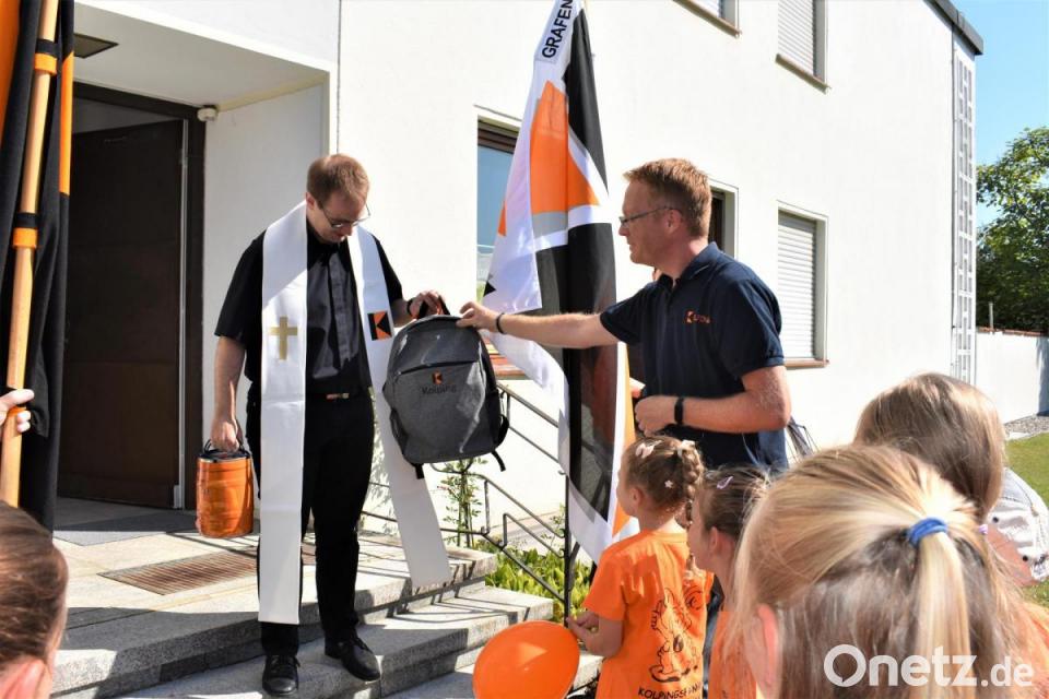 Kolping-Vorsitzender Andreas Greiner hieß den Pfarrer herzlich willkommen und überreichte ihn die Stola als Symbol für ihn als Kolping-Präses. Außerdem gab es einen Kolping-Rucksack mit allerlei Nützlichen sowie zwei Kolping-Luftballons von zwei Kindern. Der Kinderchor sang unter anderen: "Einfach spitze, dass Du da bist" und "Mögen Engel dich begleiten auf dem Weg der vor dir liegt". Der neue Präses segnete die Kolping-Mitglieder. Die erste gemeinsame Aktion war anschließend Eis-Essen bei der Eisdiele.
