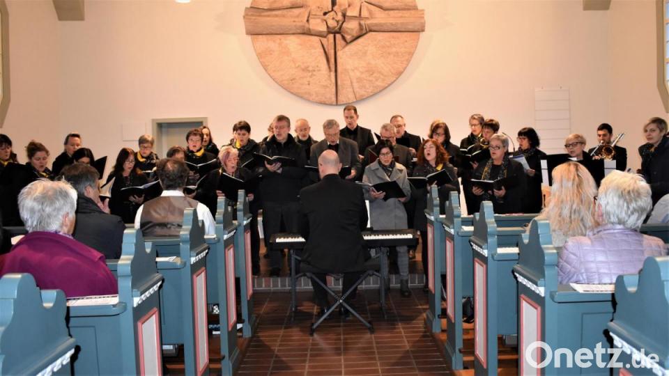 Der Kantate von Klaus Heinzmann "Preis und Anbetung sei Dir" widmeten sich die 27 Sänger des Chores "New Voices" unter Leitung von Walter Thurn. "Kommt herbei, lasst uns den Herrn frohlocken" und "Lobe den Herrn meine Seele", lautete der vielfältie Lobgesang, der mit den Solisten Hannelore Lippiotta (Sopran), Martina Brunner (Sopran) und Stephan Wolf (Bariton) eine besondere Note erhielt. Auch die Querflöten, gespielt von Petra Gottsche und Anna-Lena Renner, trugen dazu bei.