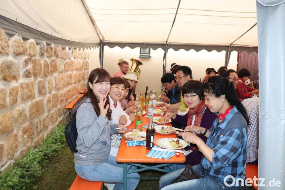 Bereits bei der Ankunft der Gäste kamen deutsche Freunde und Bekannte im Museumsinnenhof, um sie kennen zu lernen. Als Begrüßungsessen gab es Sau vom Spieß. Bayerische Unterhaltung bot das Duo „Er und Ich“ an Akkordeon und Tuba. Die koreanischen Gäste ließen es sich nicht nehmen, mit Gesangs- und Jodeleinlagen, sowie Opernarien und klassischen Standards eine Kostprobe ihres Repertoires zu geben.