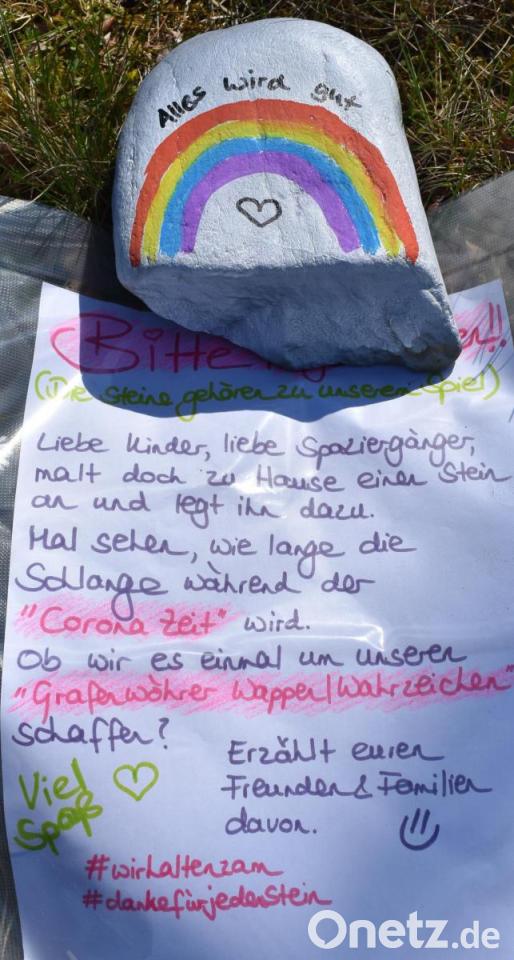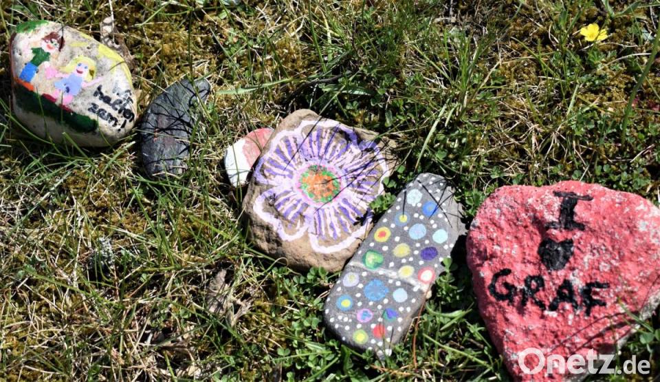 Eine schöne Idee können diejenigen entdecken, die beim Grafenwöhrer Stadtwappen vorbeikommen. Hier sind bunt verzierte Steine abgelegt – innerhalb von etwa zehn Tagen kamen durch eine Aktion rund 90 wunderbarer Unikate zusammen. "Mal sehen, wie lange die Schlange während der Corona-Zeit wird. Ob wir es einmal um unser Grafenwöhrer Wappen/Wahrzeichen schaffen?", fragen sich die Initiatoren.