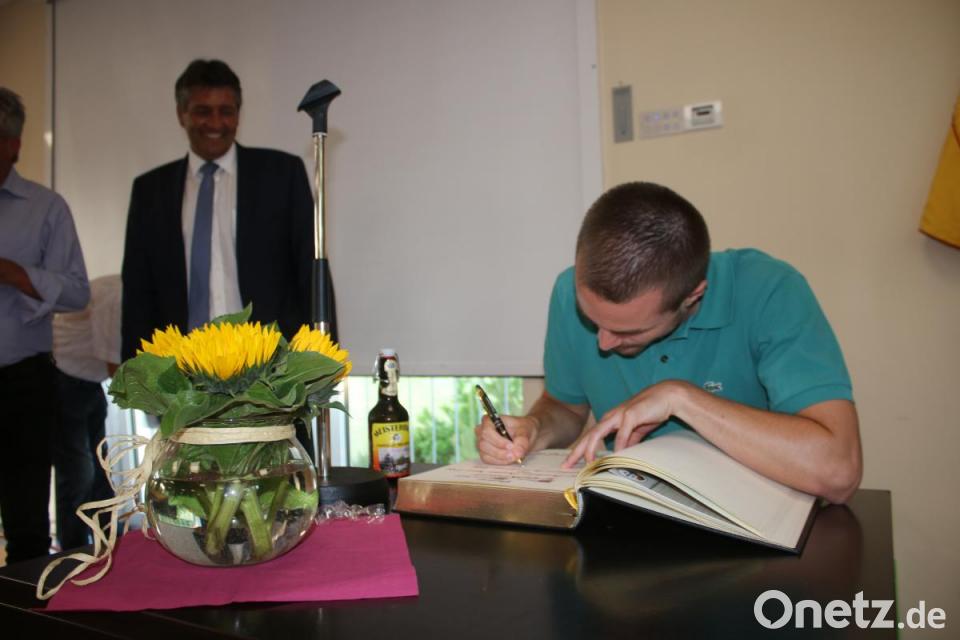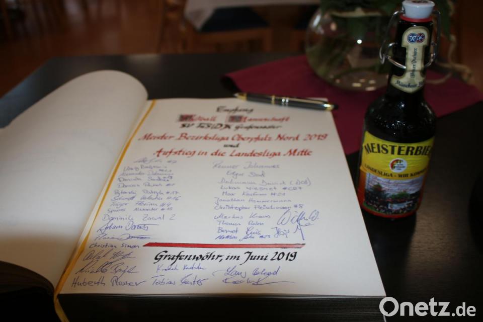 Bürgermeister Edgar Knobloch zeigte sich stolz auf die Fußballer, die ihm "ans Herz gewachsen sind". Das Team spiele nun in einer Liga, "die zum Sportpark passt", denn so eine Anlage sei in der Gegend sonst nirgends zu finden. Der Erfolg komme von der harten Trainingsleistung, und die Wahrnehmung des Aufstiegs sei der richtige Schritt, auch wenn die nächste Saison hart werde, meinte der Bürgermeister. Er hatte extra ein "Meister-Bier" mit dem Logo und dem Aufstiegsfoto des Vereins besorgt. Knobloch wünschte den Fußballern, dass sie "einfach so bleiben" sollen, wie sie sind, "dann wird das nächstes Jahr schon klappen".
