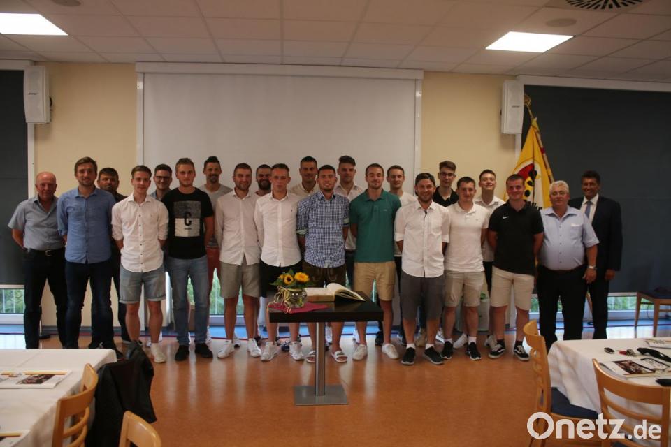 Von der Kreisliga bis in die Landesliga aufsteigen - dieses Kunststück gelingt nicht vielen Mannschaften. Das SV-Team hat dies aber geschafft, und so wurde Spielern und Verantwortlichen erneut ein Empfang durch die Stadt mit Eintrag ins Goldene Buch zuteil. Mehr eine Ehre als Pflicht war das für sie, auch wenn der Spruch auf den Meistershirts annehmen lässt, so ein Aufstieg wäre etwas Unangenehmes: "Why always we?" - "Warum immer wir?"