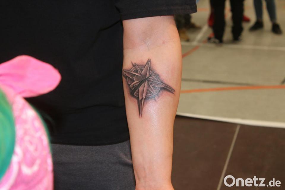 Spannend wurde es am Sonntagabend: Manche Tattoos brauchten zwei Tage, um gestochen zu werden. In der Kategorie "Small and Crazy" gewannen schließlich die "Bearded Brothers" aus Herzogenaurach mit einer Darstellung einer Kompassnadel auf dem Unterarm eines Kunden.
