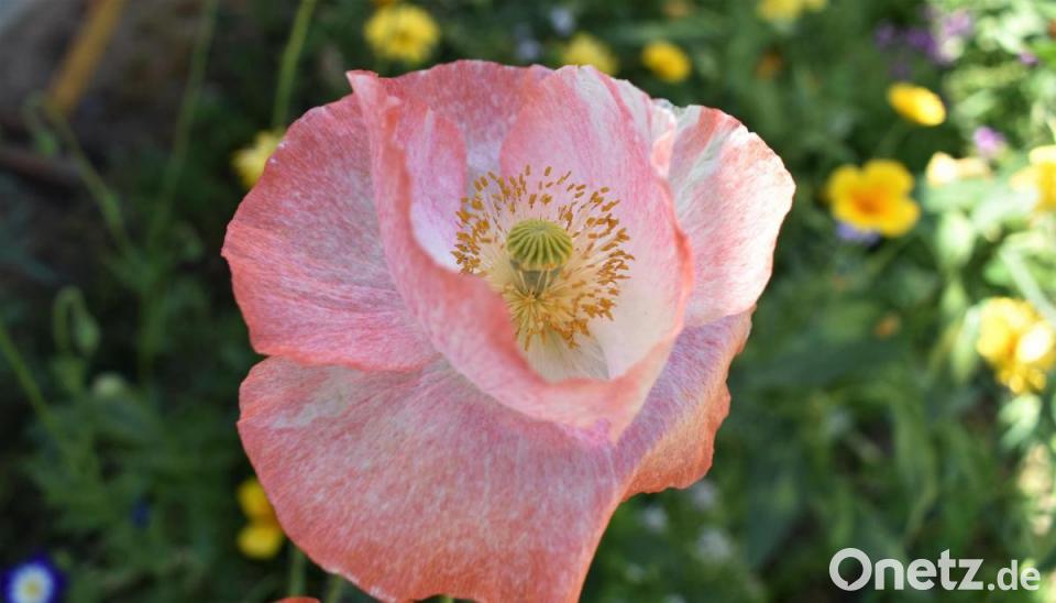 Gerade mit dieser hellen Farbe, die nicht einmal genau beschrieben werden kann, sieht die Blüte zart und zerbrechlich aus. Dennoch ist sie standhaft: Auch der immer wieder kräftig blasenden Wind kann ihr nichts anhaben.