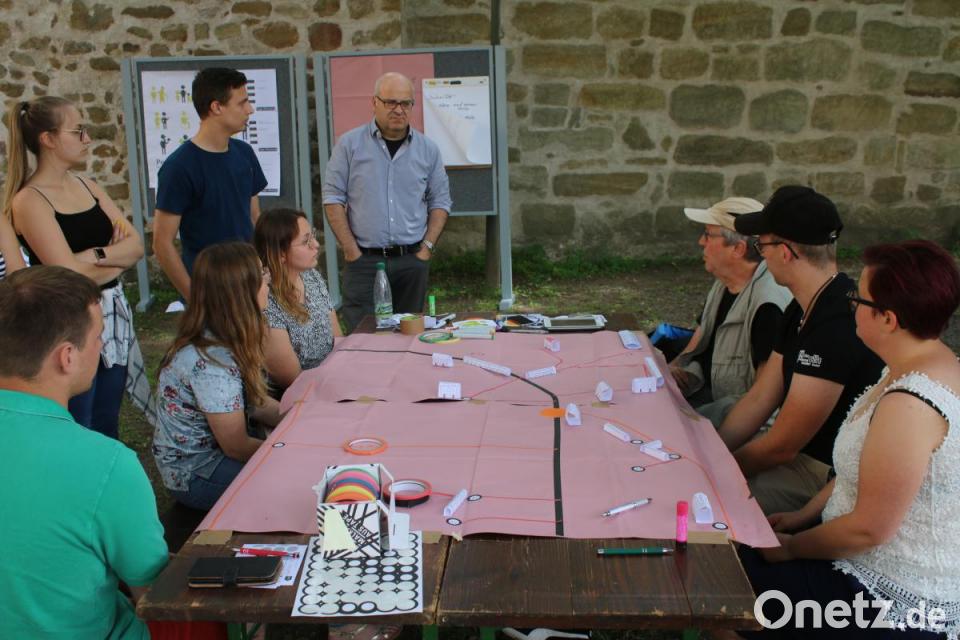 Anschließend durften zwei Teams Pläne die Verkehrsanbindungen für Grafenwöhr und Umgebung überdenken. Auf großen Planen sollten Orte mit bestehenden und gewünschte Haltestellen und Straßen eingezeichnet werden. Dann wurden Rollen vergeben: Familien, Angestellte, Senioren, Studenten, Menschen mit Behinderungen und viele mehr. Treske stellte die Frage: "Erreicht jeder mit Bus und Bahn die gewünschten Orte in einer annehmbaren Zeit?" Smartphones halfen, Fahrpläne zu überprüfen. Das Ergebnis war meist ernüchternd: Um halb sechs aufstehen, damit man um neun Uhr beim Arzt in Amberg ist, fand genauso wenig Verständnis wie eine tägliche Zwei-Stunden-Fahrt in die Arbeit. Stadtrat Thomas Mayer fasste zusammen: "In München schreien alle nach Umweltschutz, aber da brauchen sie kein Auto. Am Land ist es ein "must have"."