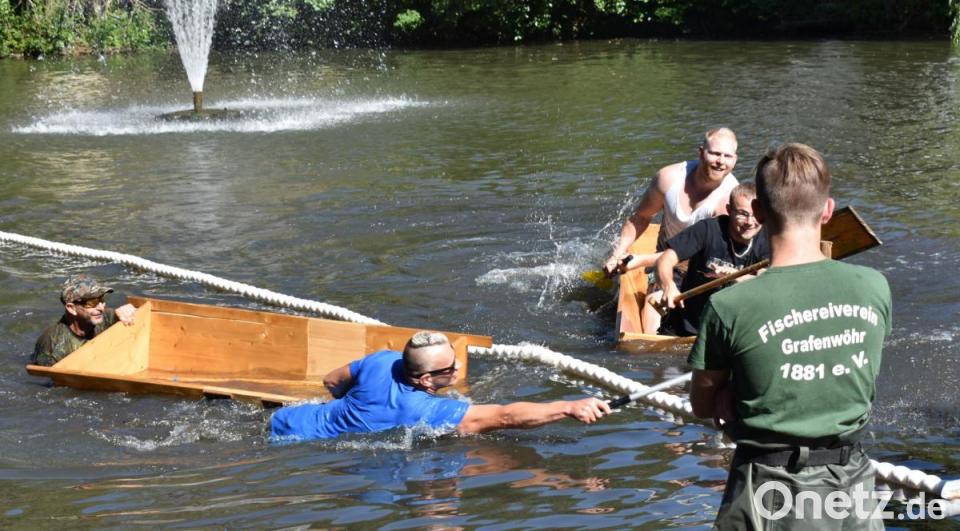 Traditionsgemäß startete das Fischerfest am Samstag mit der Austragung des Sautrogrennens. Dazu begrüßte der Vorsitzende des Fischereivereins, Wolfgang Specht, die Gäste am Stadtweiher beziehungsweise am Festplatz beim Kastenhaus. Dieser bedankte sich bei allen Helfern und bei Michael Mayer, dem Schatzmeister des Vereins, der diesmal die Moderation übernahm.