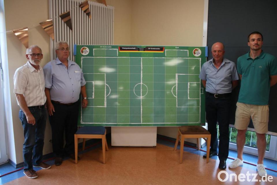 Dafür wurde der A-Platz in acht mal zehn gleich große Parzellen unterteilt und auf einer großen Tafel aufgezeichnet. Hinzu kommen je zwei Quadrate für die Heim- und Auswärts-Bank. "Für 25 Euro oder mehr kann jeder eine Patenschaft für einen Teil des Fußballfeldes für ein Jahr übernehmen", erklärt Kassier Tobias Reiter. Die Tafel wird unter der Überdachung am Fußballfeld aufgehängt, so dass jeder Zuschauer sehen kann, wem welcher Teil des Platzes "gehört".
