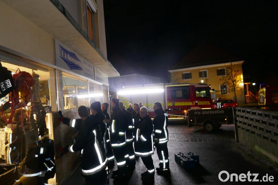 Unter der Leitung von Kommandant Alexander Richter rückten die Feuerwehrleute am Samstag kurz vor Mitternacht aus um ein eingeschlagenes Schaufenster in der Alten Amberger Straße zu verschließen. Die Streife der Polizeiinspektion Eschenbach hatte die Feuerwehr zum Hilfeinsatz gerufen, nachdem ein zunächst Unbekannter die Glasscheibe des Geschäfts zerstört hatte. Der Ideenreichtum der Feuerwehrler schien dabei unbegrenzt: Mit großen Sperrholztafeln, die vorher den Faschingswagen schmückten, wurde das Fenster wieder dicht gemacht.