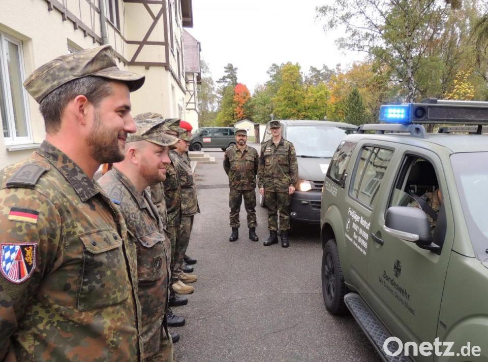 Dienststellenleiter Oberstleutnant Florian Rommel chauffierte den künftigen Ruheständler mit dem Streifenfahrzeug nach Hause. Für die Blaulichtbegleitung durch die Feldjäger hatte der Spieß der Einheit, Stabsfeldwebel Norbert Prediger, gesorgt.