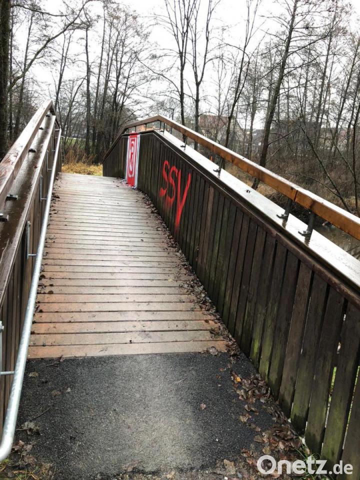 Unbekannte waren in der Nacht von Heiligabend auf den ersten Weihnachtsfeiertag in Grafenwöhr mit der Spraydose unterwegs. An drei verschiedene Stellen malten sie Schriftzüge des SSV Jahn Regensburg auf.