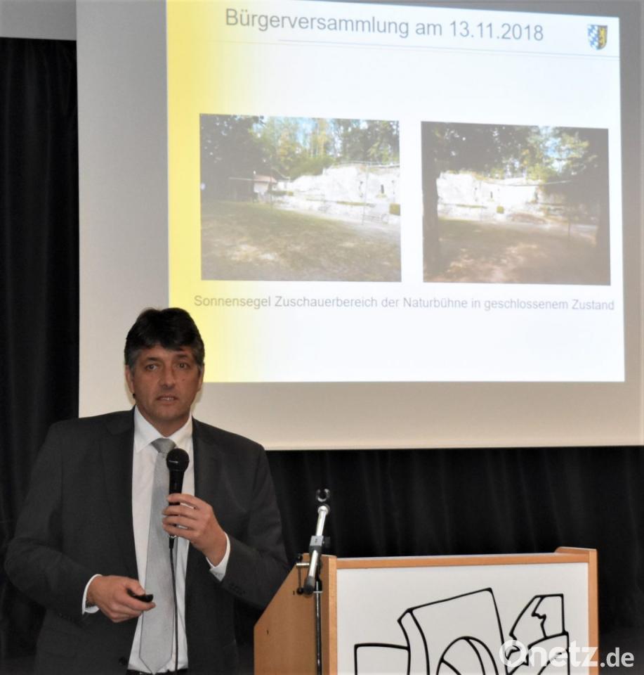 In der Bürgerversammlung informierte Bürgermeister Edgar Knobloch die Grafenwöhrer über diesen erfreulichen Haushaltsstand. 2017 und 2018 musste die Stadt keine Kredite aufnehmen. 2015 betrug der Schuldenstand 6,1 Millionen Euro. Zum Ende des Jahres 2018 rechnet Knobloch mit einem Schuldenstand von 4,9 Millionen Euro. Der Bürgermeister berichtete auch umfassend über abgeschlossene Baumaßnahmen, wie die Altstadtsanierung in der Alten Pfarrgasse und Rößlwirtsgasse, die Neugestaltung des Pausenhofs, die Sanierung der Felswand in der Pressather Straße, der Ausbau in der Adalbert-Stifter-Straße, die Wetterschutzüberdachung für den Zuschauerbereich der Naturbühne am Schönberg, die Installation eines Sonnensegels sowie eines Behinderten-WC's im Waldbad und die Neueindeckung einer Fahrzeughalle beim Städtischen Bauhof. "Am alten Bauhofgelände wäre Platz für Einfamilienhäuser und Wohnungen", erklärte der Bürgermeister. Blick nach Gmünd und Hütten