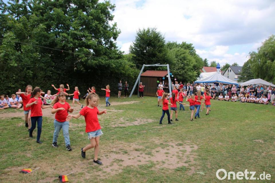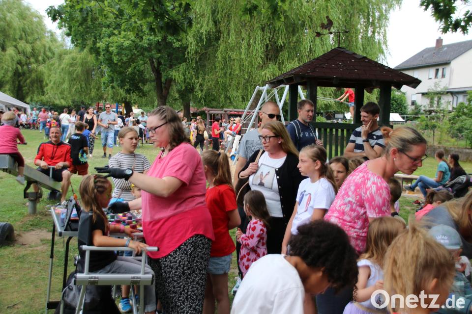 Die Bierbänke waren schon morgens zum Frühschoppen besetzt und füllten sich bis zum Abend immer mehr. Die Kinder waren mit dem Toben auf der Hüpfburg und vielen Aktionen gut beschäftigt. An insgesamt fünf Stationen galt es Aufgaben zu meistern und Stempel einzusammeln. Beim Sackhüpfen und Dreibeinlaufen war Koordination gefragt. Beim Rennen mit Bobbycars brauchte es Kraft und Ausdauer, der Ringwurf forderte ordentlich Geschick, das Angeln Geduld. Am anstrengendsten war wohl das Eimer füllen: Wasser musste mit einem Schwamm aus einem Eimer geschöpft werden und dann im Sprint zum nächsten Eimer gebracht werden, so lange bis dieser voll war. Mit den vollen Stempelkarten konnten sich die Teilnehmer dann tolle Preise abholen.