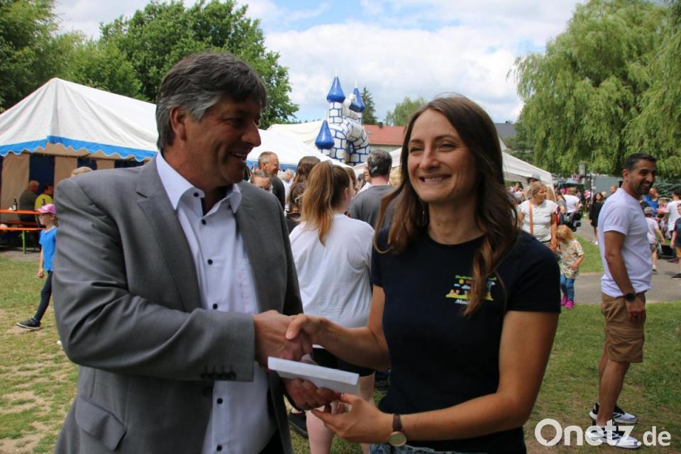 Höhepunkt war dann der Auftritt des SV Grafenwöhr Tanzen: Die "Little Dancers", die "Dancing Stars" und die "Dancing Girls" zeigten Ausschnitte aus ihrem Programm für die große Tanzrevue „Reise um die Welt“, die für Mitte Juli angesetzt ist. Dabei wurde es auf dem großen Spielplatzgelände schon eng, da jeder der vielen Besucher einen Blick auf die Showeinlage erhaschen wollte. Über den ganzen Tag verteilt, besuchten knapp 1000 Menschen das Fest der Siedlergemeinschaft. Auch Bürgermeister Edgar Knobloch kam vorbei und überreichte Schwaiger im Namen der Stadt Grafenwöhr 150 Euro. Diese kann das Geld gut gebrauchen: Die Pläne für den Spielplatz seien noch lange nicht erfüllt.