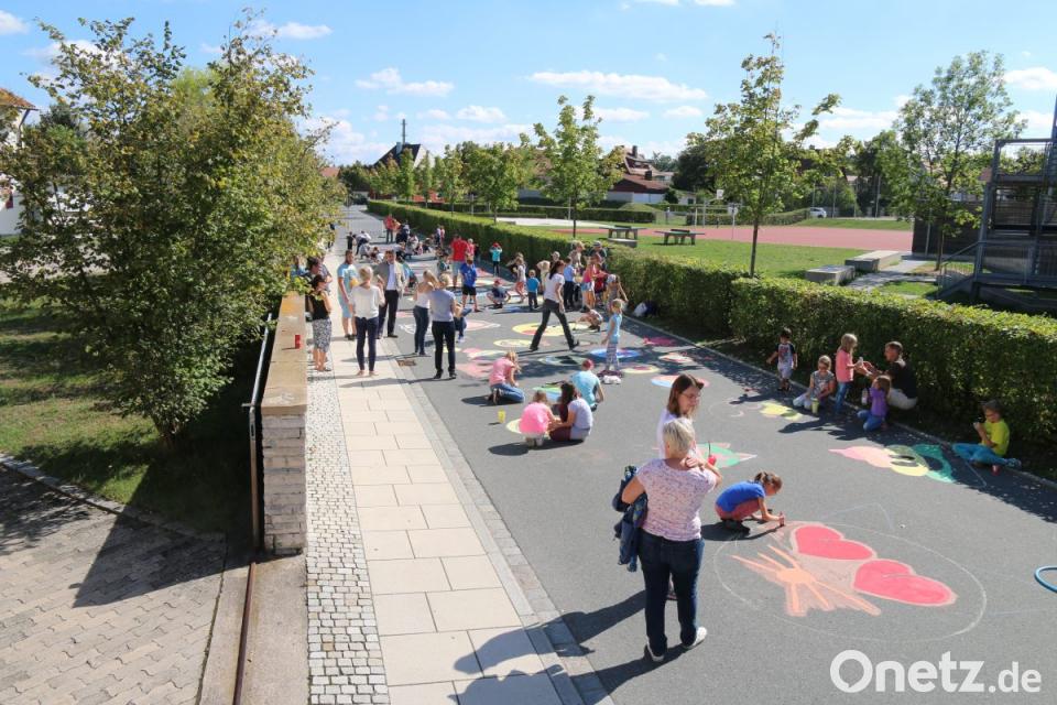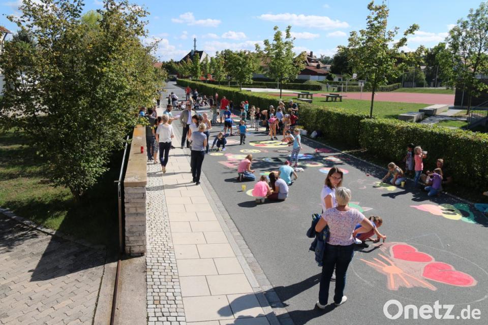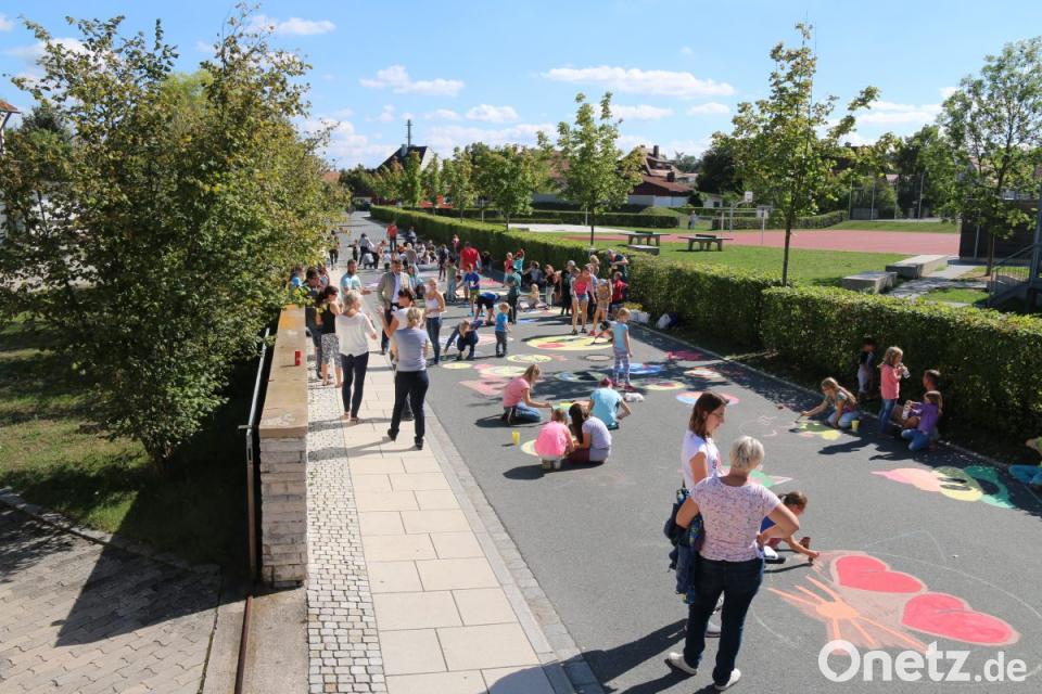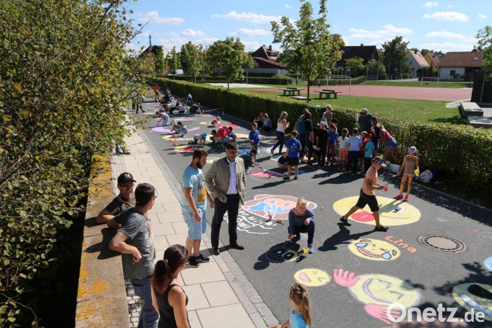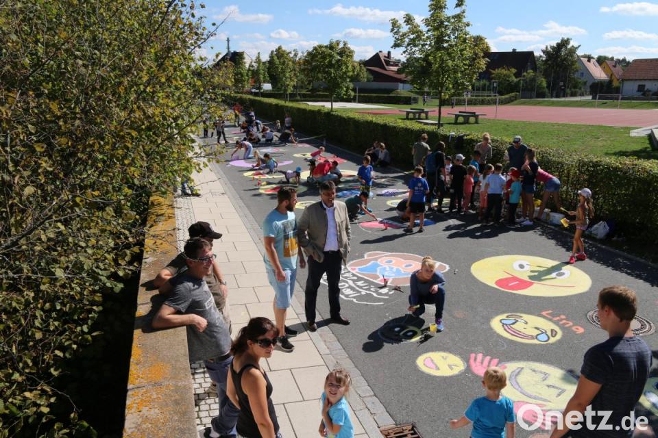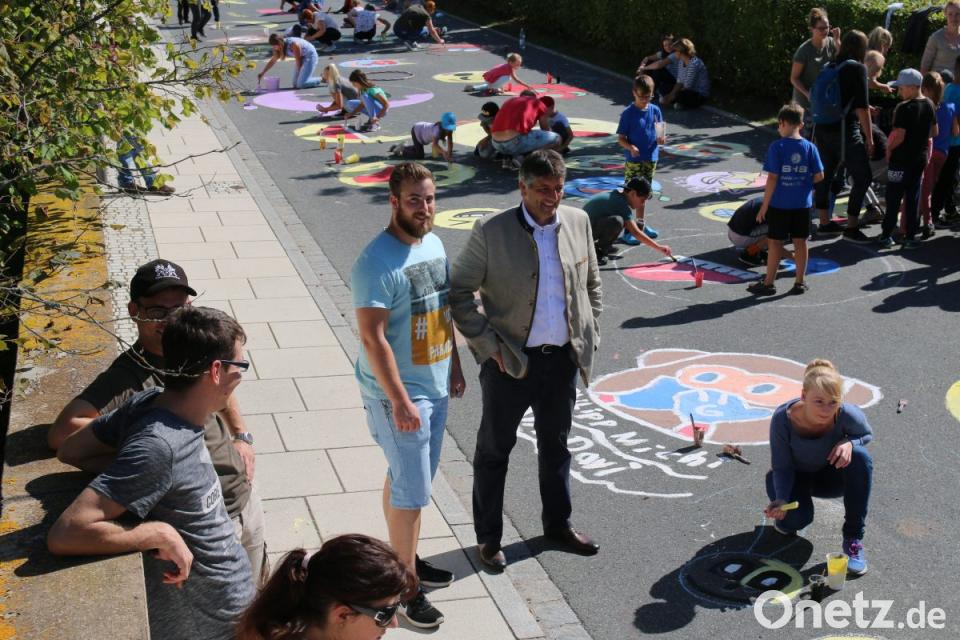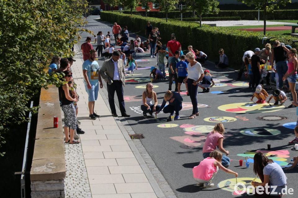 Der Start in Schuljahr ist losgegangen. Oft heißt der tägliche Schulweg für die Erstklässler, zum ersten Mal allein unterwegs zu sein und sich damit auch den Gefahren des Straßenverkehrs auszusetzen. Um für einen sicheren Schulweg zu sorgen veranstaltet die Junge Union Grafenwöhr daher seit Jahren ihre Straßenmalaktion. Am alten Weg, der Straße angrenzend zum Haupteingang zur Grund- und Mittelschule schmücken farbige Bilder den Asphalt und sollen die Autofahrer auf den Schulanfang aufmerksam machen. Dieses Jahr stand die Veranstaltung unter dem Motto „Emojis“ und war bei schönstem Spätsommerwetter ein voller Erfolg. Nachdem die Aktion im Vorjahr wetterbedingt ins Wasser fallen musste, gab es etliche Nachfragen enttäuschter Eltern und Kinder nach einem Nachholtermin. Dieses Mal spielte das Wetter mit und die Resonanz war nach der Pause umso größer. Über 100 Kinder, Eltern und sonstige Helfer füllten die von der JU vorskizzierten lachenden, zungenbleckenden, grinsenden Smileys und Tierköpfe aus. Anschließend durften die Künstler sich unter dem Werk mit ihrem Namen zumindest für ein Jahr verewigen. Kleine Brotzeiten und Getränke wurden von der Jugendpartei zur Verfügung gestellt. Auch erster Bürgermeister Edgar Knobloch und zweite Bürgermeisterin Antita Stauber statteten dem Event einen Besuch ab und sahen nach dem Rechten. Die Kunstwerke können nun bewundert werden und sorgen hoffentlich für einen unfallfreien Start ins Schulleben.