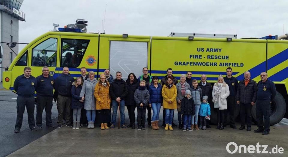 Die Lagerfeuerwehr erledigt aber nicht nur ihre Arbeit auf dem Übungsplatzgelände, sondern unterstützt auch die Feuerwehren rund um den Truppenübungsplatz. Für die ständige Einsatzbereitschaft und Hilfe bedankte sich eine Abordnung der SPD Grafenwöhr mit einem Besuch der Lagerfeuerwehr am Flughafen. Bürgermeisterkandidat Michael Tiefel zollte den Feuerwehrlern höchsten Respekt, schließlich leben und arbeiten auf Europas größtem Truppenübungsplatz rund 28.000 Menschen, für deren Sicherheit die Feuerwehr sorgt. Im Namen der SPD Grafenwöhr sowie der Bürger sprachen die Parteimitglieder ihren Dank aus und überreichten dem Fire Chief Josef Rodler eine Brotzeit für seine Mannschaft. Rodler bedankte sich für das Interesse und lud die Kinder ein, eine kleine Runde mit einem der größten Löschfahrzeuge zu drehen.