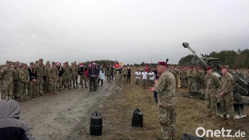 Dem „Toy Drop“ geht eigentlich immer ein Fallschirmsprung von verschiedenen Einheiten mit den Geschenken voraus, doch auch, wie die Jahre vorher, machte das Wetter der Veranstaltung einen Strich durch die Rechnung. Dennoch sprach Kaplan Michael Kayle von der 173. Luftlandebrigade ein Gebet. "Es ist wichtig, dass wir selbstlos sind und unsere Zeit, unsere Energie und in diesem Fall Geschenke geben, um die Menschen um uns herum unterstützen zu können“, sagte der Pfarrer der Pateneinheit des Marktes Kirchenthumbach. Dazu war auch Bürgermeister Jürgen Kürzinger zum ersten Mal bei dieser Aktion dabei. Nach der Übergabe an die Soldaten der 4-319th Airborne Field Artillery Regiment und ihre Familien, die die gespendeten Spielsachen in ihre Rucksäcke verpackt hatten, marschierten sie die fünf Kilometer von der "Bunker Drop Zone" zum Paradefeld. Dort luden "Veterans of Foreign Affairs"-Mitglieder und Soldaten über 400 Spielzeuge in Fahrzeuge. Noch in diesem Monat werden all diese Spenden zu Jugendlichen in Kinderheime transportiert.