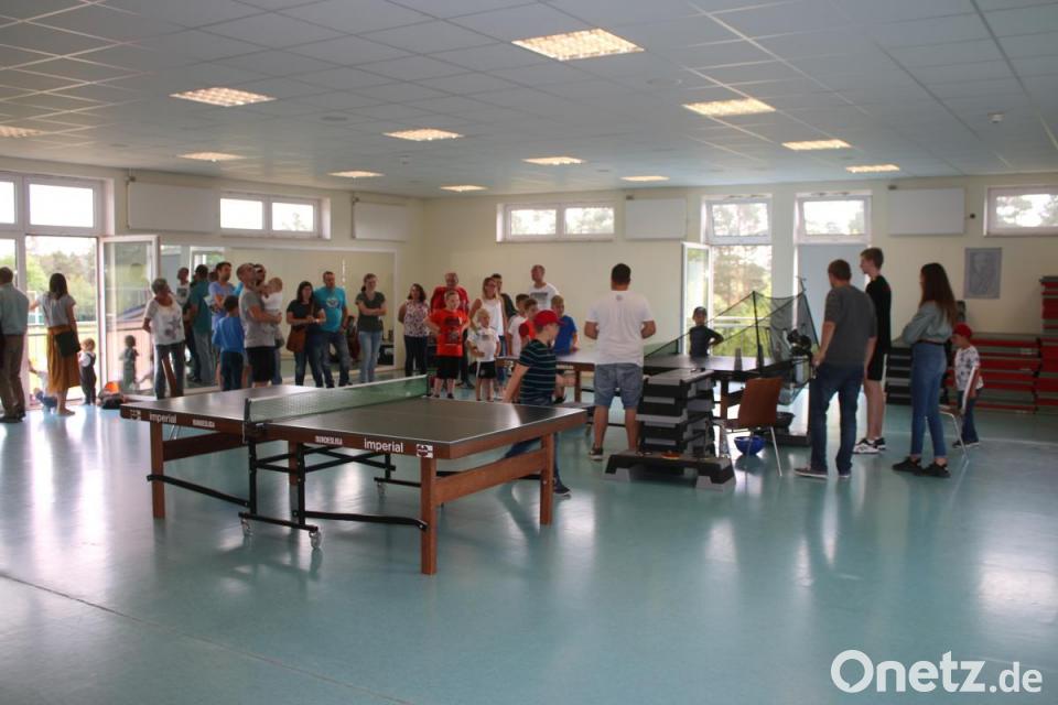 Den Klassiker unter den Übungen hatten die Fußballer vorbereitet. Beim Torwandschießen, bei die Distanzen nach Alter abgestuft waren, erzielte Familie Schaffarzik 6 Treffer bei 12 Versuchen und gewann einen Fußball. Beim Tischtennis spielte eine Maschine den Teams die Bälle zu. Mit dem Return sollten Becher abgeschossen werden. Kinder durften 30 Mal, Erwachsene 20. Am Ende lagen die Familien Schatz und Urbas mit elf Punkten vorne. Sie teilten sich den Preis: ein Doppelset von Tischtennisschlägern.