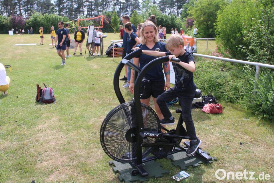 Wer das Gelände betrat, stieß zuerst auf die Sparte Fitness. Hier galt es für die Teams, in zwei Mal 30 Sekunden so viele Burpees – ene Mischung aus Kniebeuge, Liegestütz und Strecksprung – wie möglich zu machen. Familie Jakimenko schaffte 39 und gewann ein Black Roll Set.
