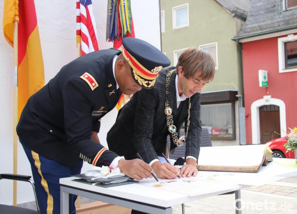 Es ist offiziell: Die Patenschaft der Stadt Pegnitz mit dem "1-6 Field Artillery Bataillon" der 41st Field Artillery Brigade in Grafenwöhr ist unterzeichnet. Das es hierbei eine Verbindung gibt, die bereits etwas länger zurückliegt, ist vielen gar nicht bekannt. Neben Bürgermeister Wolfgang Nierhoff und Bataillonskommandeur Lieutnant Colonel Angel Llompart waren auch Stadtratsmitglieder sowie einige Soldaten erschienen.