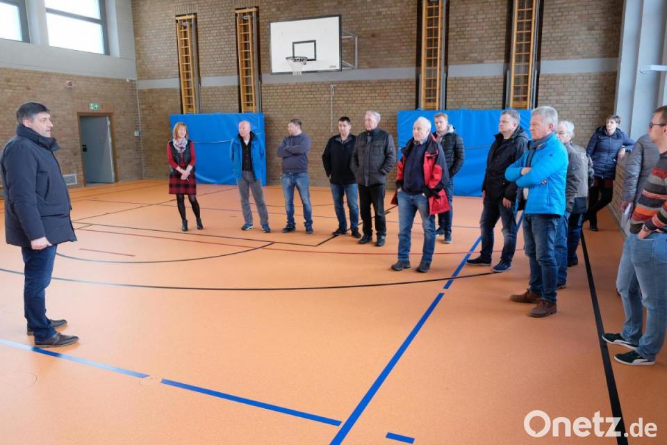 Was sich in der Schulturnhalle im Zuge der Teilsanierung getan hat, davon überzeugten sich am Montagnachmittag Bürgermeister Edgar Knobloch und die Mitglieder des Bauausschusses. „Schaut goud as“, kommentierten die Ratsherren übereinstimmend den gelungenen Austausch des Hallenbodens. Wenn schon denn schon, lautete die Devise für weitere Sanierungsarbeiten. Dem Einbau eines neuen Hallenbodens ging die Installierung einer Fußbodenheizung voraus. Heizkörper an den Hallenwänden gibt es nicht mehr. Ein Plus an Sicherheit und Ästhetik. Eine deutliche Verbesserung und mit dem Orangeton des Bodens angenehm fürs Auge, wie auch Konrektorin Ruth Seitz anmerkte. Die Stadt ließ sich das Projekt 102.000 Euro kosten. An der Sanierung beteiligt waren auch einheimische Firmen. Die Sporthalle wird während der Generalsanierung der Stadthalle auch als Ausweichquartier für verschiedene Sportarten dienen.