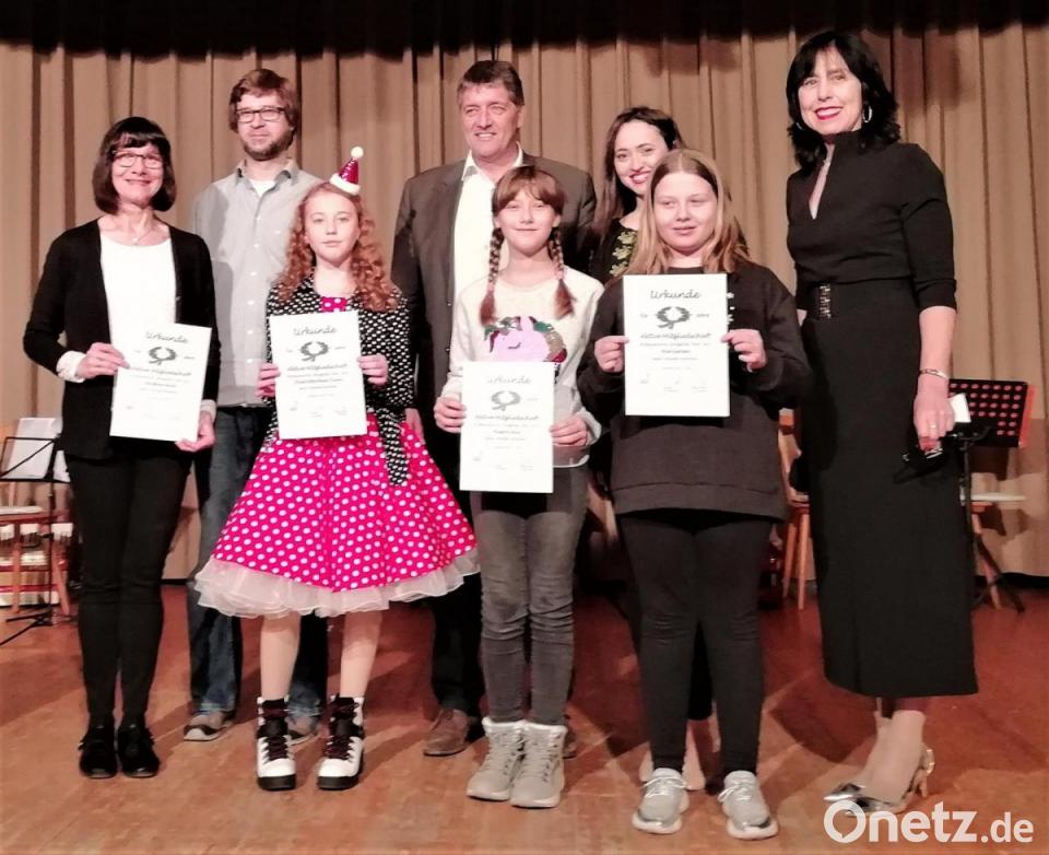 Bevor es mit der Musik weiterging, ehrte die Vorsitzende einige langjährige Musikerinnen. Christine Geyer wurde für 15 Jahre ausgezeichnet. Seit fünf Jahren musizieren Charlotte Maja Dunn, Alisa Kraus und Mia Larsen bei den "Klingenden Tönen.