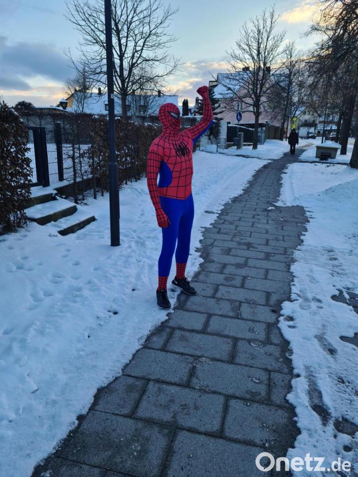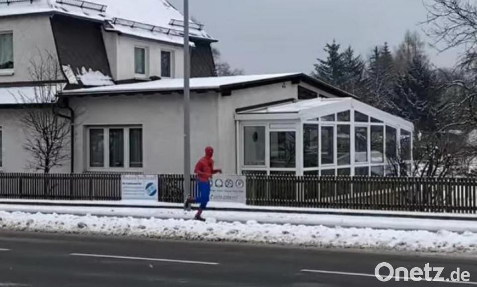 In der vergangenen Woche sorgte eine bunte Gestalt für verwunderte Blicke und regelmäßiges Autogehupe. Vor der im Schnee gehüllten Stadt als Hintergrundkulisse war ein auffällig rot-blau gekleidete Spiderman unterwegs und joggte mehrere Male viele Kilometer durch das Stadtgebiet. Natürlich wird bereits gerätselt, wer hinter der "freundlichen Spinne" aus der Nachbarschaft" steckt.