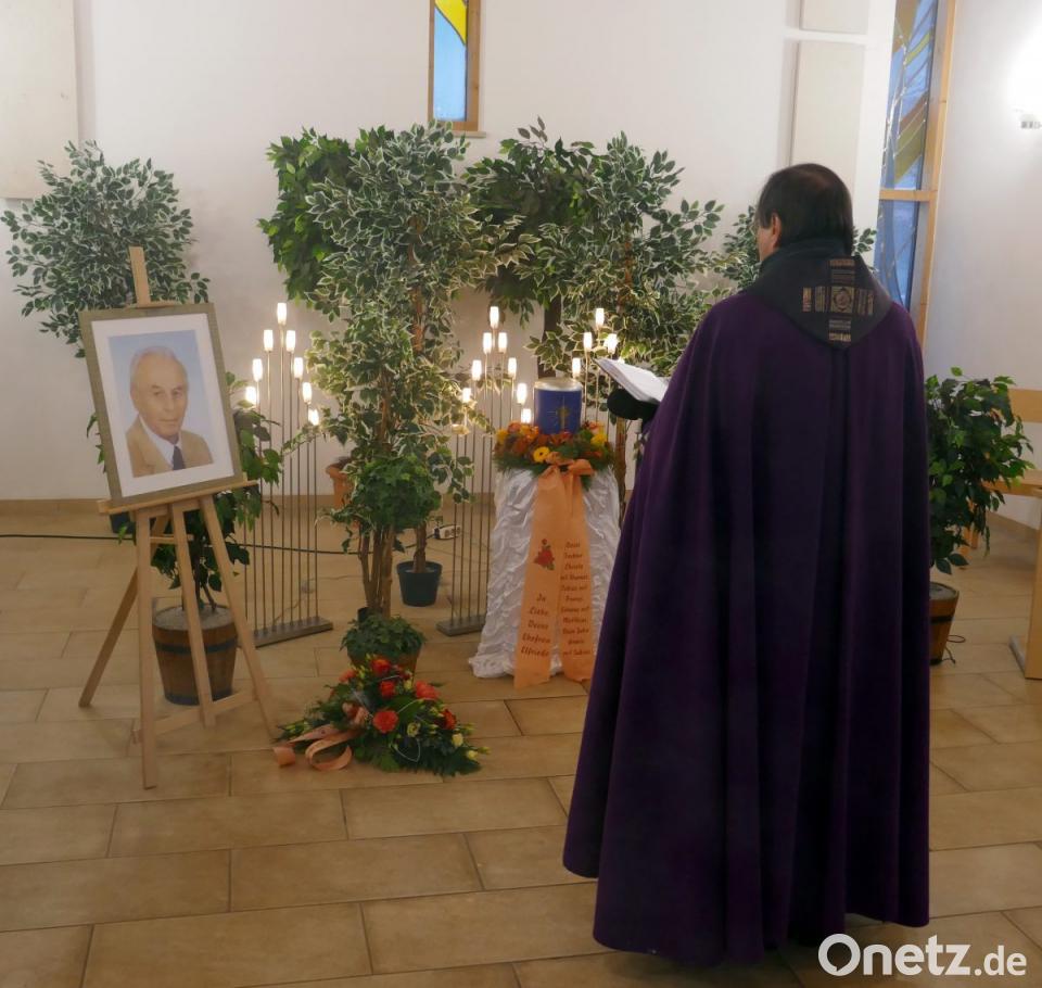 Zusammen mit Monsignore Karl Wohlgut und Ruhestandspfarrer Hans Bayer standen Weihbischof Pappenberger und Stadtpfarrer Bernhard Müller am Altar der Friedenskirche und beteten für Suttner, der in der Kirche sehr engagiert war.