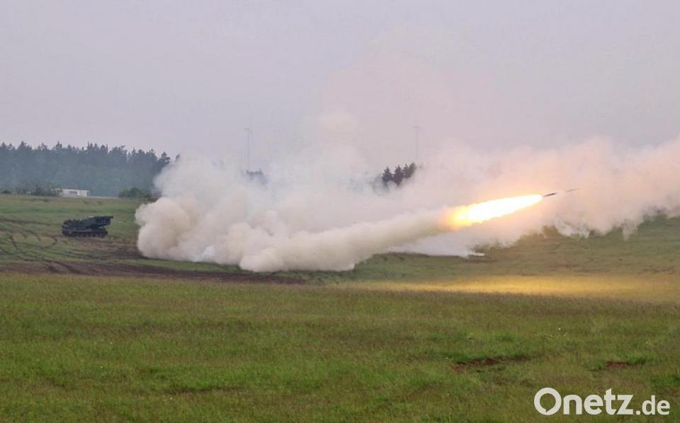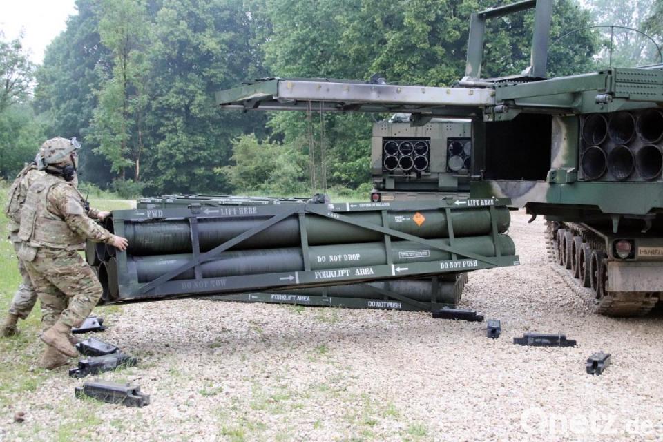 Die Mehrfachraketenwerfer "Multiple Launch Rocket System" (MLRS), die am Mittwoch auf dem Truppenübungsplatz in Grafenwöhr ihre Zertifizierungsübung abhielten, sind für präzise Artilleriefeuerunterstützung mit großer Reichweite ausgelegt. Der einzelne Werfer hat in zwei Startbehältern je sechs Raketen, die die dreiköpfige Besatzung einzeln oder in Folge bis zu einer Reichweite von 70 Kilometern abfeuern kann. Die 41st Field Artillery Brigade, die seit fast zwei Wochen in Grafenwöhr trainiert, erhielt die Ziele bei dieser Übung von einem vorgeschobenen Gefechtsstand.