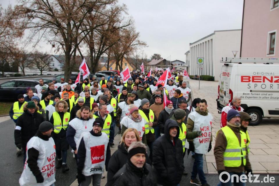 In Grafenwöhr versammelten sich über 550 Beschäftigte aus dem Ort und Vilseck am frühen Morgen an der Lagerwache 3. Bezirksgeschäftsführer Alexander Gröbner, Gewerkschaftssekretärin Kathrin Birner und Verdi-Landesfachgruppenleiter der Stationierungsstreitkräfte Wolfgang Dagner heizten trotz winterlicher Temperaturen die Stimmung an. Anschließend zogen alle über die Neue Amberger und Schulstraße in das Jugendheim, das angesichts der Teilnehmerzahl an seine Kapazitätsgrenzen stieß.