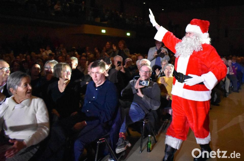 Nach der "Nutcracker Suite" kündigte Moderator Sergeant Dean-Roy Bernard den Soldatenchor an, der aus Ingenieuren, Infanteristen und Sanitätern besteht. "Dann wird es rockig", verriet Bernard, der auf der Bühne auch selbst performte. Wunderbar erklangen "Jingle Bell Rock", "Rockin' Around the Christmas Tree" und "Santa Claus is coming to Town" – und der kam dann auch wirklich kam. Es gab aber auch leise Töne mit "Silent Night" beziehungsweise "Stille Nacht", bei dem das Publikum aufgefordert wurde, mitzusingen. Ruhig erklang auch "Joy to the world", das ein Ausdruck von Freude und Lob ist.