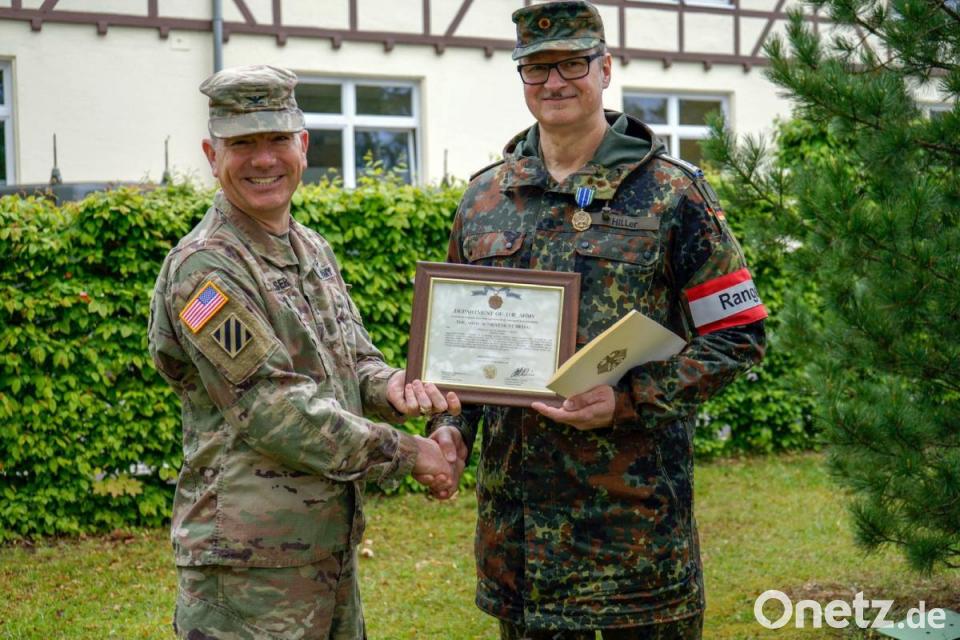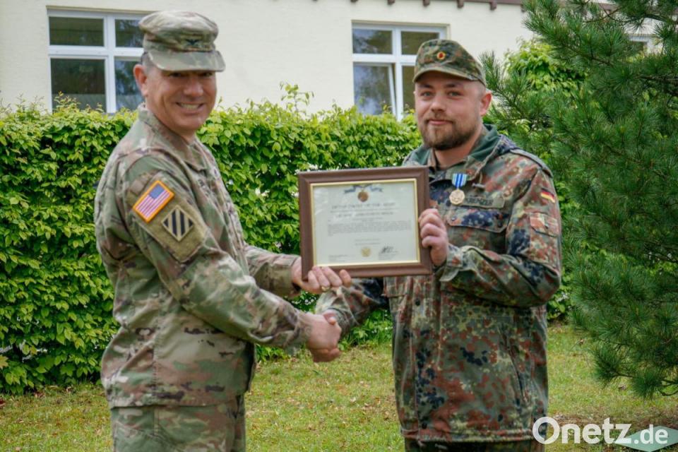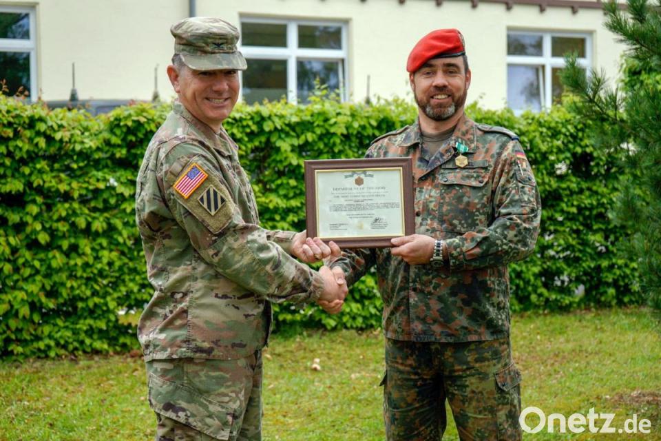 Kommandant Oberstleutnant Florian Rommel erhielt aus den Händen des Chefs des Stabes vom 7. US-Armee-Ausbildungskommando, Oberst William Glaser, die „Army Commendations Medal“. Mit der „Army Achievement Medal“ wurden Stabsfeldwebel Michael Hiller und Hauptfeldwebel Daniel Krenzer ausgezeichnet. Die Urkunden zur Verleihung der Medaillen tragen die Unterschrift des kommandierenden Generals der US-Armee in Europa, Generalleutnant Christopher G. Cavoli. Im Urkundentext wird die gute Zusammenarbeit zwischen den US-Soldaten und den Bundeswehrsoldaten herausgestellt.