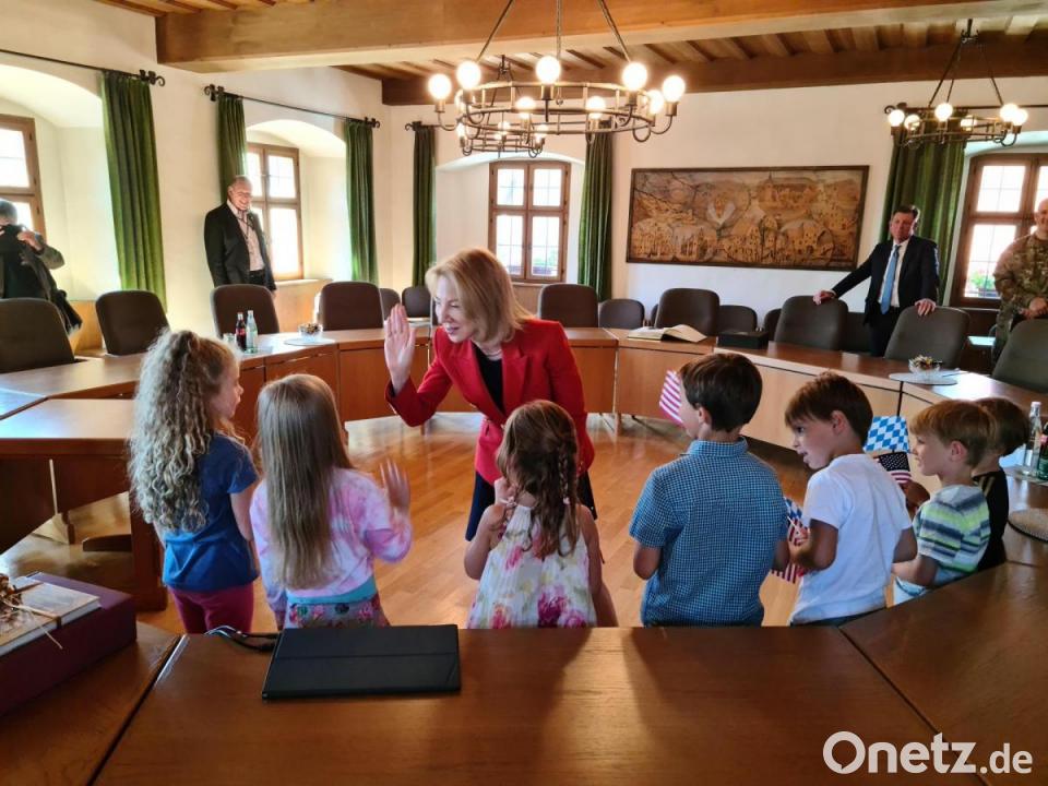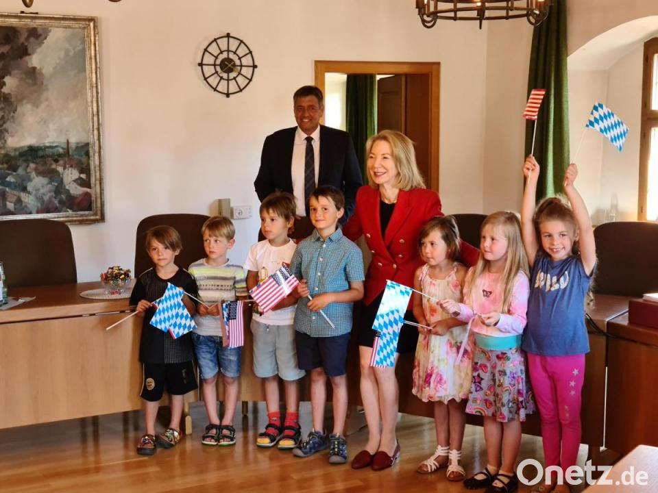 Die 72-Jährige ist seit dem 17. Februar die amerikanische Botschafterin in Berlin. Nicht nur Bürgermeister Edgar Knobloch freute sich über ihre Visite sondern auch eine Gesangsgruppe des katholischen Kindergartens versicherten ihr es sei "schön, dass es sie gibt". Gutmann gab sich dabei herzlich offen und klatschte alle Kinder mit einem typisch amerikanischem High-Five ab.