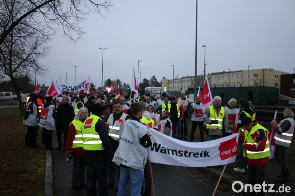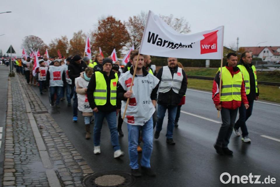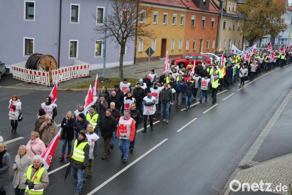 Anschließend zog der Zug über die Neue und Alte Amberger Straße hin zur Stadthalle zur Kundgebung und Streitgelderfassung. Organisatorin Birner hatte die aktuellen Zahlen der Veranstaltung parat. "In Grafenwöhr, Vilseck und Hohenfels haben 700 Beschäftigte die Arbeit niedergelegt, und davon sind 500 beim Zug mitgelaufen", verkündet sie unter dem Beifall der Streikenden. Der Streik war erst kurzfristig angekündigt worden, um den Arbeitgebern keine Möglichkeit für eine Reaktion zu geben, und um ihn wissen zu lassen: Ohne Arbeiter geht es nicht.