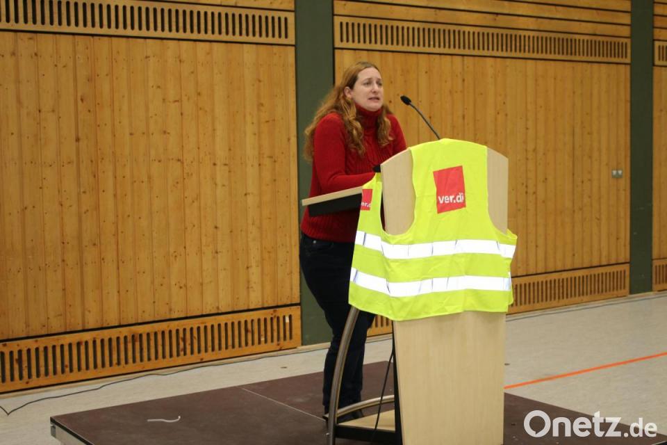 Verdi-Bezirksgeschäftsführer Alexander Gröbner stellt diese auch noch einmal klar: "Wir wollen sechs Prozent mehr Lohn und der Mindestlohn soll nicht unter 2000 Euro liegen. Jeder soll von seiner Arbeit leben können." Es sei traurig, dass die Menschen für vernünftige Arbeitsbedingungen immer wieder aufs Neue auf die Straße gehen müssen. Für Gewerkschaftssekretärin Kathrin Birner sind die angebotenen 1,4 Prozent eine Frechheit.