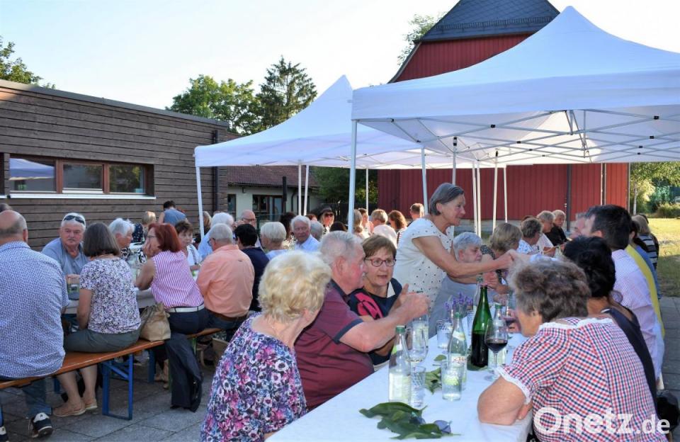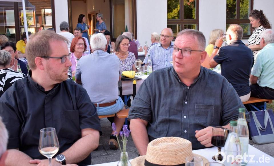 Die Sonne lachte nur so vom Himmel herunter. Grund genug, den Weinabend, vom Gemeindehaus in den Pfarrgarten zu verlegen. Schließlich sollte das "Geburtstagskind", die Evangelische Michaelskirche, deren Weihetag sich bald zum 100. Mal jährt, auch etwas davon mitbekommen. Pfarrer Thomas Berthold begrüßte die Gäste zum Weinabend mit Musik. Dieser war gleichzeitig ein Dankeschön für die Mitarbeiter der Kirchengemeinde.