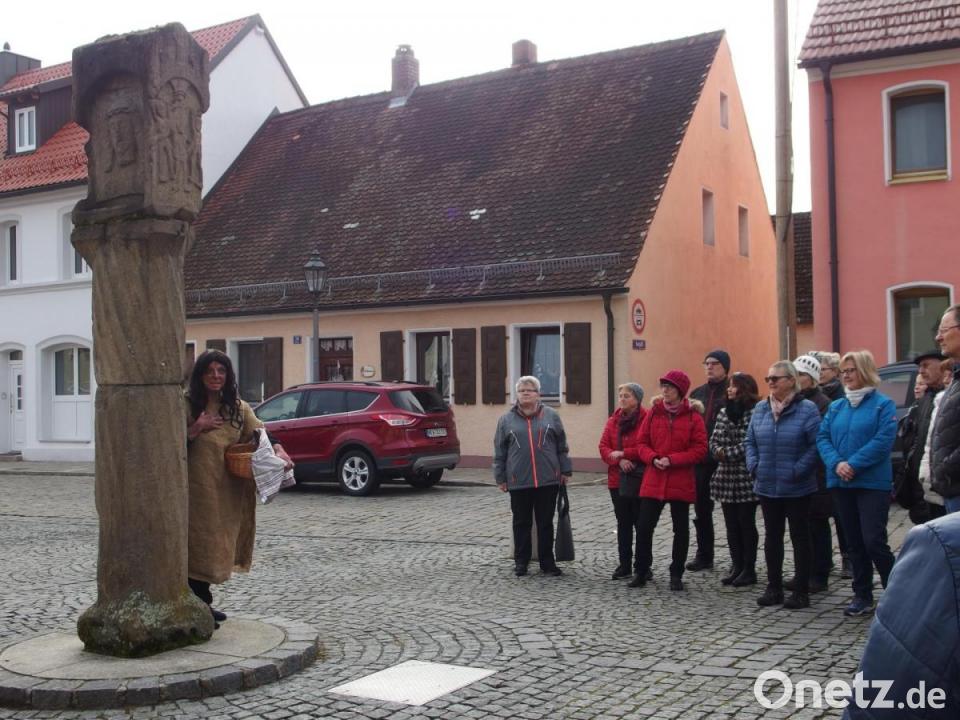 Schreml hatte zahlreiche Bilder dabei und beschrieb anhand historischer Pläne, Bilder und Aufnahmen die Geschichte der Plätze lebendig. Ihr Geschick als gelernte Gästeführerin bewies sie, indem sie die Herkunftsorte der Besucher spontan mit einflocht und Verbindungen zu Grafenwöhr herstellte. Humorvolle Anekdoten sowie Wegzehrung in Form von Kaubonbons und Goldtalern lockerten die rund zweistündige Führung auf.