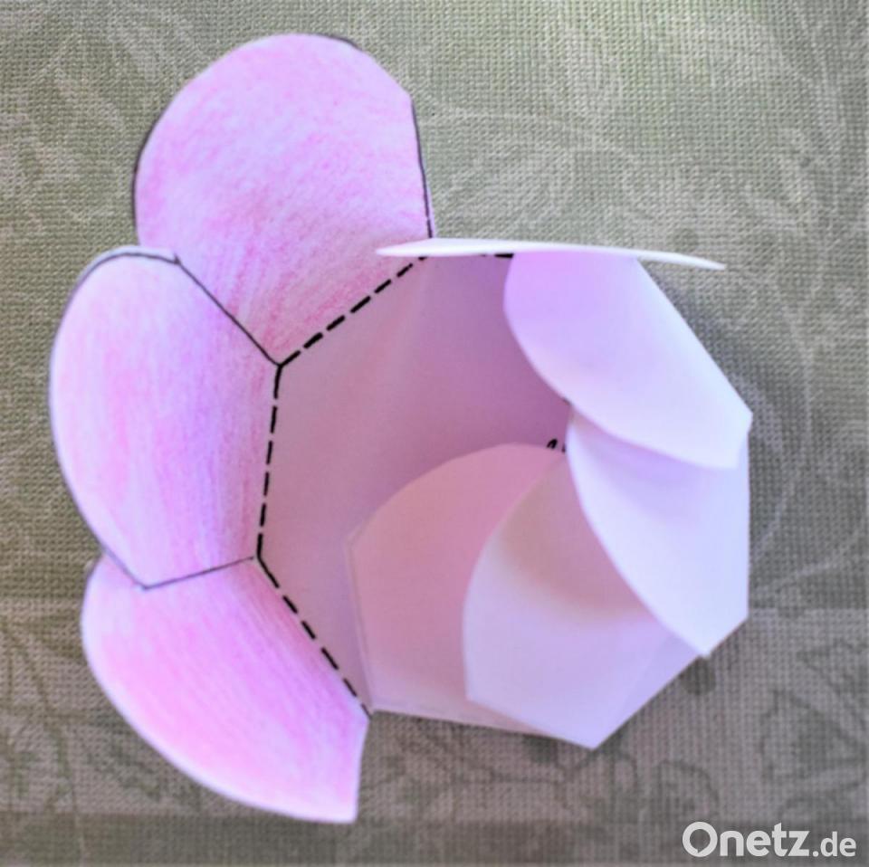 Die Anleitung für die "Zauberrose" ist auf der Homepage der Pfarrei zu finden unter www.pfarrei-hl-dreifaltigkeit.de/pfarrei/fuer-kinder/. Die Mädchen und Buben können die Rose zunächst ausmalen. Danach wird sie Rose an der durchgezogenen Linie ausgeschnitten, auch zwischen den Blütenblättern. Die gestrichelten Linien werden dann zur Mitte hin gefaltet.