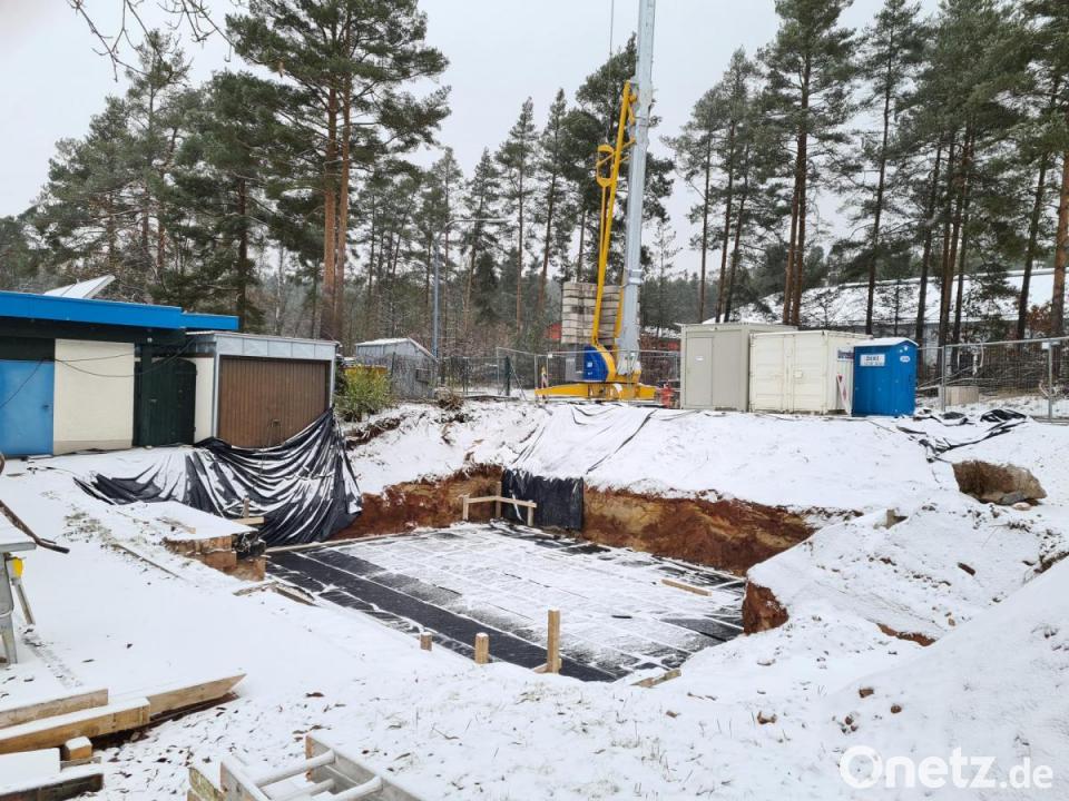 Die Sanierung des Waldbades schreitet voran. Die Grube für den Bau des neuen Betriebsgebäudes hinter dem Kiosk ist bereits ausgehoben. Aufgrund technischer Bestimmungen ist nun ein größerer Chlorgasraum notwendig, in dem die notwendigen Chemikalien dann auch gelagert werden.